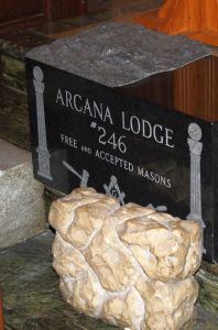 A kőtömb (durva és megmunkált, vagy faragatlan és faragott): Ez a szimbólum az ember szellemi fejlődését és erkölcsi tisztaságát ábrázolja. A Biblia a kőtömböket és az építészetet gyakran használja metaforaként, például a “sarokkő” fogalmában.