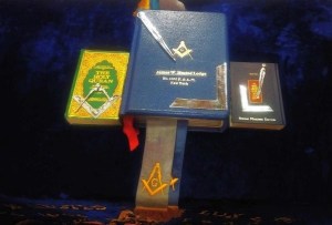 Az oltáron elhelyezett szent könyv a hit, az erkölcs és az igazság alapját jelképezi, amelyre a szabadkőművesek esküt tesznek.