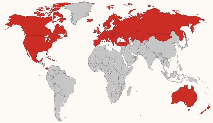 Szabadkőműves Páholyok a nagyvilágban (pirossal jelöltük azokat az országokat, ahol erős a szabadkőművesség)