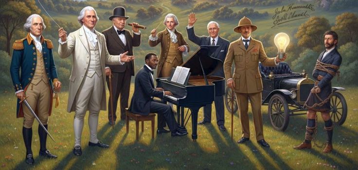 Az illusztrációk forrása: Mesterséges intelligencia generálta képek, illetve “Masonic Hall of Fame: Extraordinary Freemasons in American History”