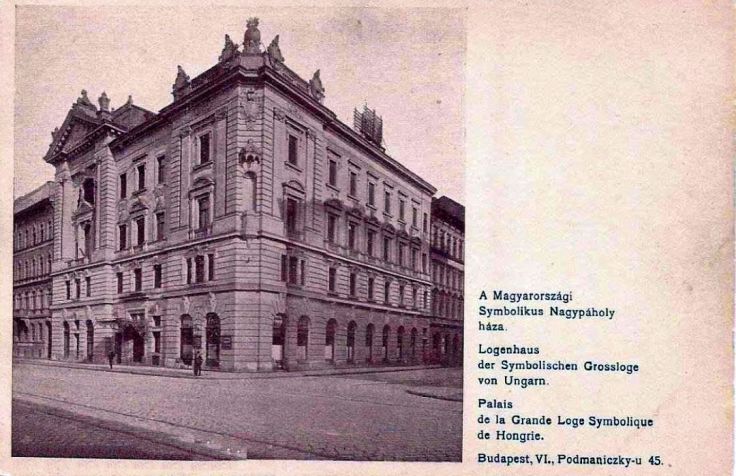 1896-ban felavatták a Budapest, VI. Podmaniczky utca 45. sz. alatt a Magyarországi Symbolikus Nagypáholy székházát.